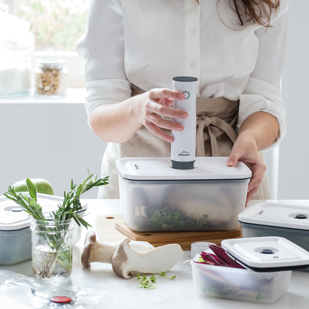 Simples, eficiente e elegante, a Bomba de Vácuo Smart da Lacor ajuda-te a conservar melhor os alimentos e a reduzir o desperdício, sem complicações. Ideal para quem valoriza frescura, organização e sustentabilidade. 🌱