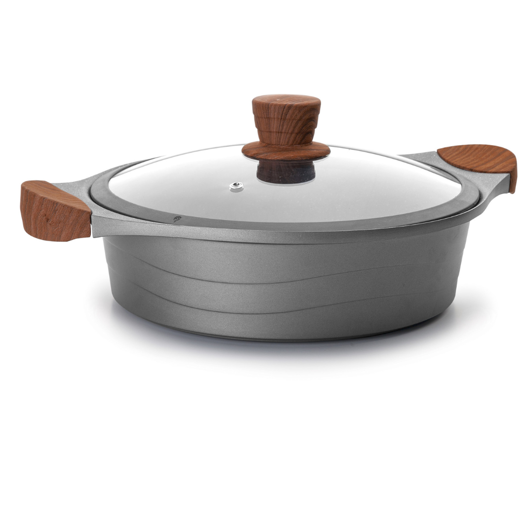 A Panela Baixa Stilo combina design moderno com desempenho excecional, sendo perfeita para saltear, estufar ou preparar pratos que beneficiem de uma base larga e tampa para retenção de calor.